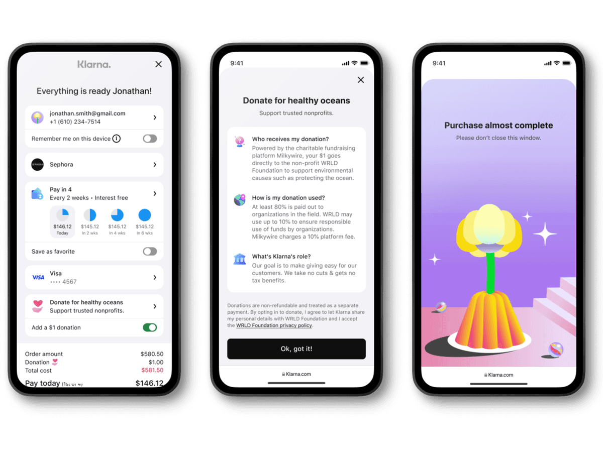 Klarna is engaging consumers across different markets to drive donations by embedding our modules in their app.