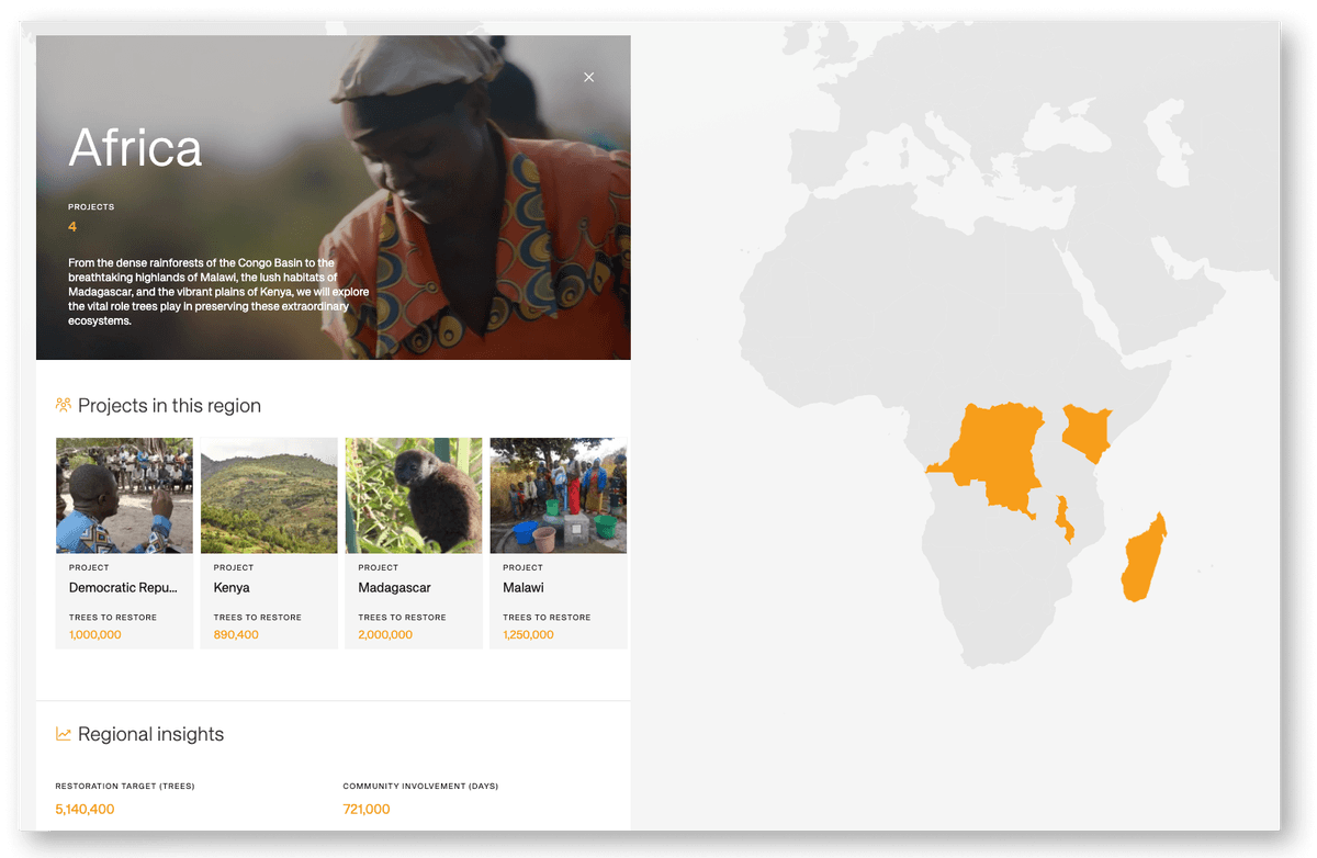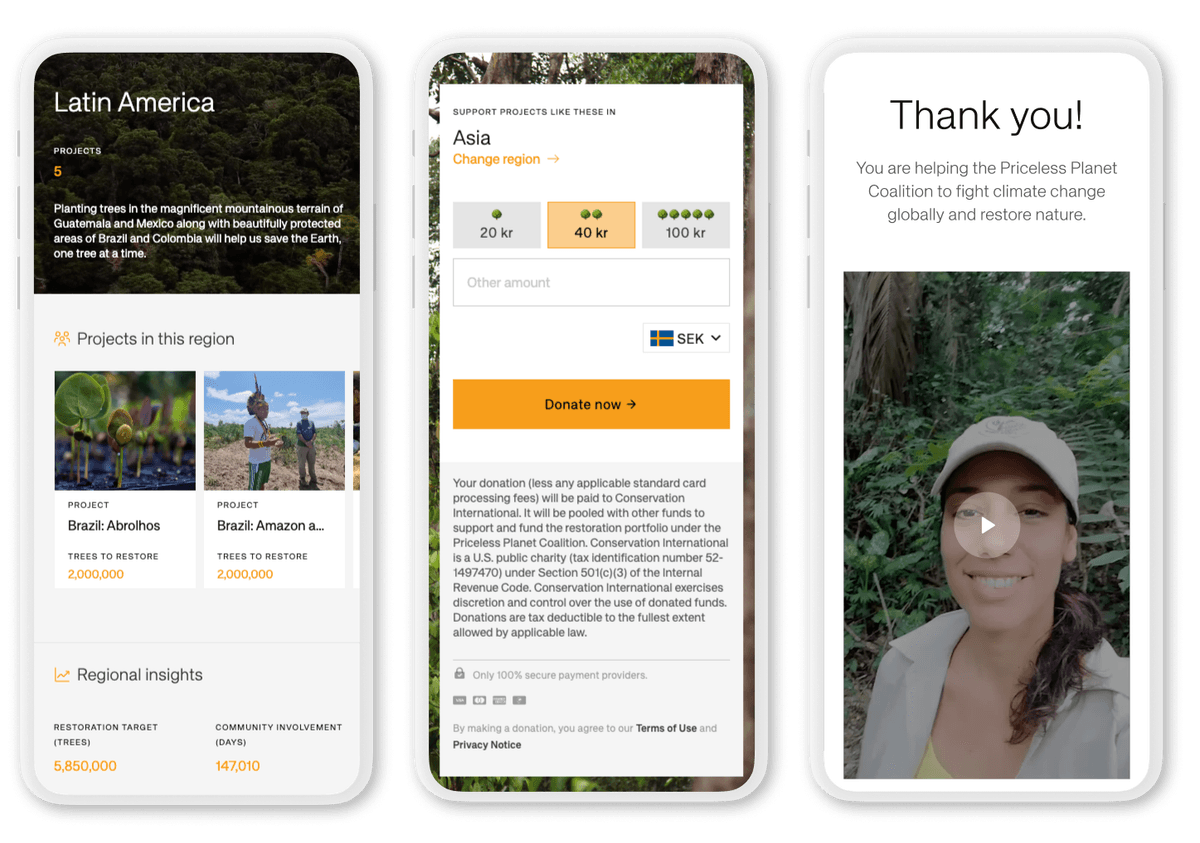 The platform enables Mastercard to help engage their corporate partners and consumers in the Priceless Planet Coalition to fight climate change by enabling donations for funding the restoration of 100 million trees.